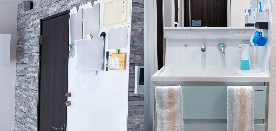 タカラの洗面台【ファミーユ】ハイバッグ水栓×側面ホーローが優秀!三面鏡はメイクより子どもの歯みがきに活躍