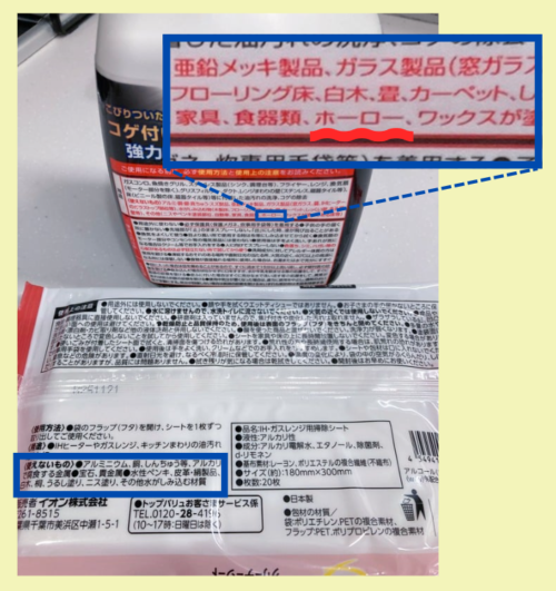 同じアルカリ性の「IH・ガスレンジ用クリーナーシート」の使えないものにはホーローは書かれていない。