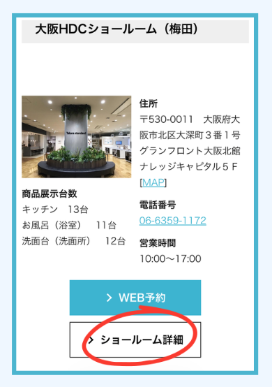 大阪梅田にある大阪HDCショールームの詳細をみると。